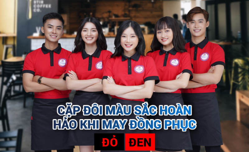 - Những màu sắc sử dụng phổ biến trong thiết kế áo đồng phục nhà hàng ăn uống là màu đỏ, màu đen và màu vàng. Do đó, bạn không phải ngạc nhiên khi thấy những màu sắc này thường xuyên xuất hiện trên những bộ đồng phục nhà hàng thiết kế chuyên nghiệp của các thương hiệu nổi tiếng trên thế giới.